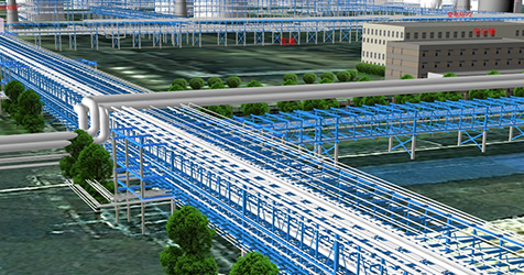 化工園總圖規(guī)劃系統將以原始圖紙資料為基礎做成的管廊、管線數據,以二維展現的方式加載到系統中,它不僅支持海量的矢量、影像和業務屬性等數據的加載和顯示